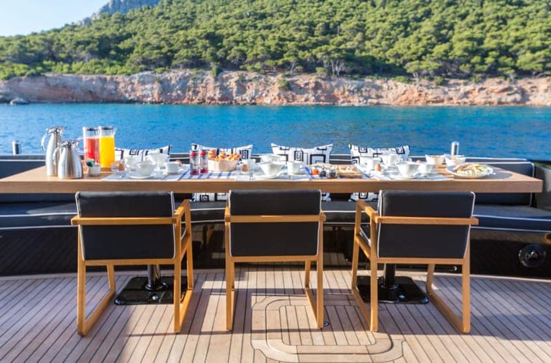This luxury yacht is equipped with top-notch amenities to ensure that your experience is nothing short of extraordinary. The spacious main salon features comfortable seating, a bar, and a state-of-the-art entertainment system. The outdoor deck is perfect for lounging in the sun or enjoying a delicious meal prepared by the onboard chef.