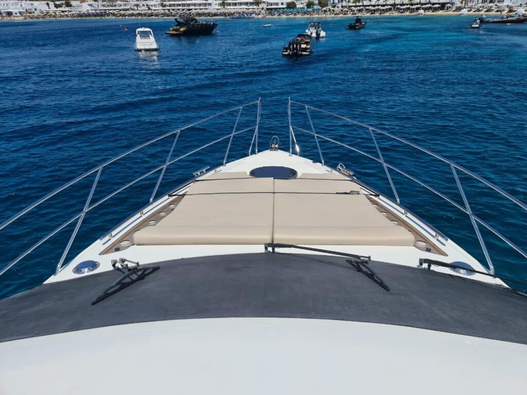 The crew of the Mykonos 171′ Ancona Boat is dedicated to providing exceptional service and ensuring that your experience is nothing short of perfect. The captain has years of experience navigating the Mediterranean and will take you to the most beautiful and secluded spots. The onboard chef will prepare delicious meals using the freshest local ingredients, and the rest of the crew will cater to your every need.