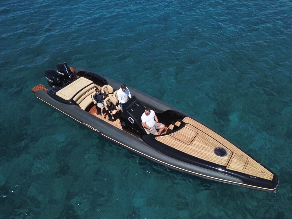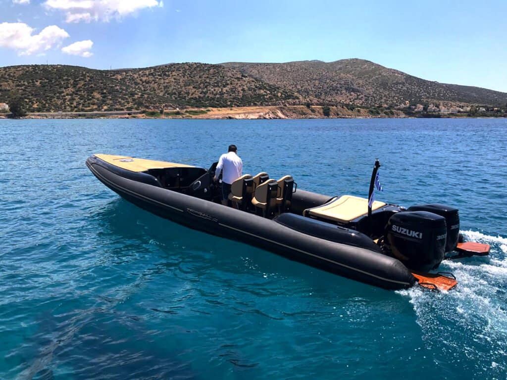 Kerkionas is a Technohull SeaDNA999 – luxurious 10m RIB boat, available for private rental in Mykonos, Paros, Athens and Saronic Gulf. Contact us for the best catamarans in Mykonos.