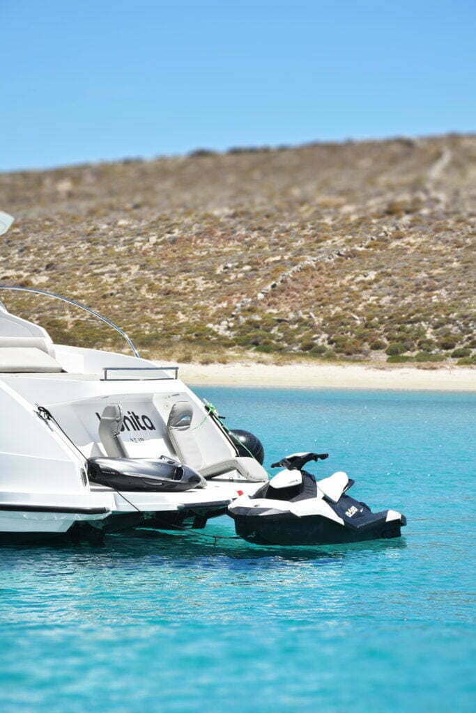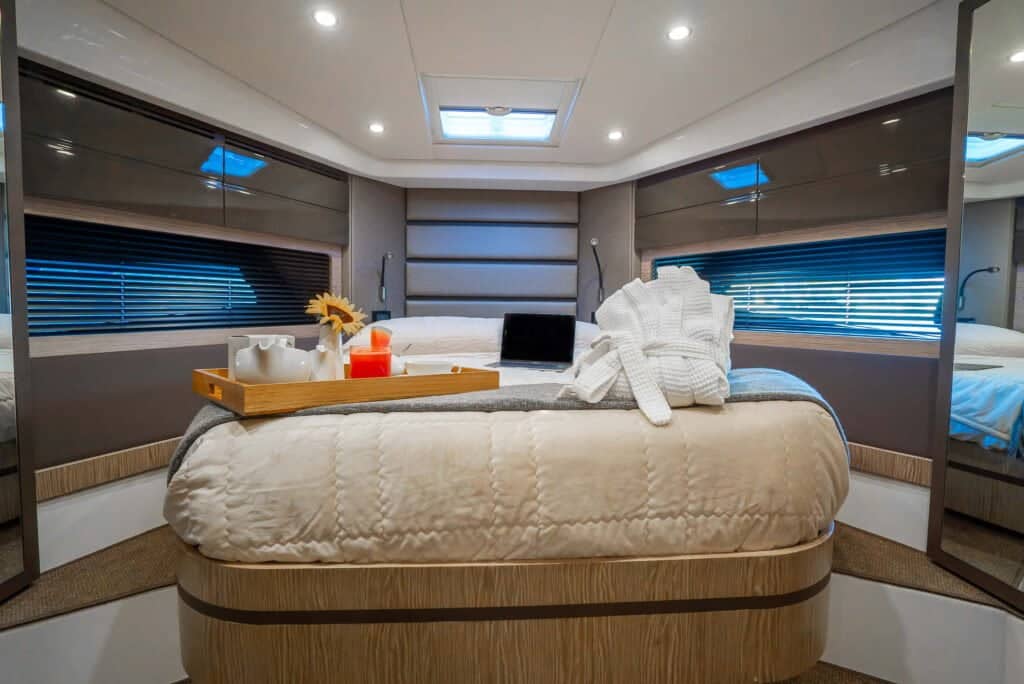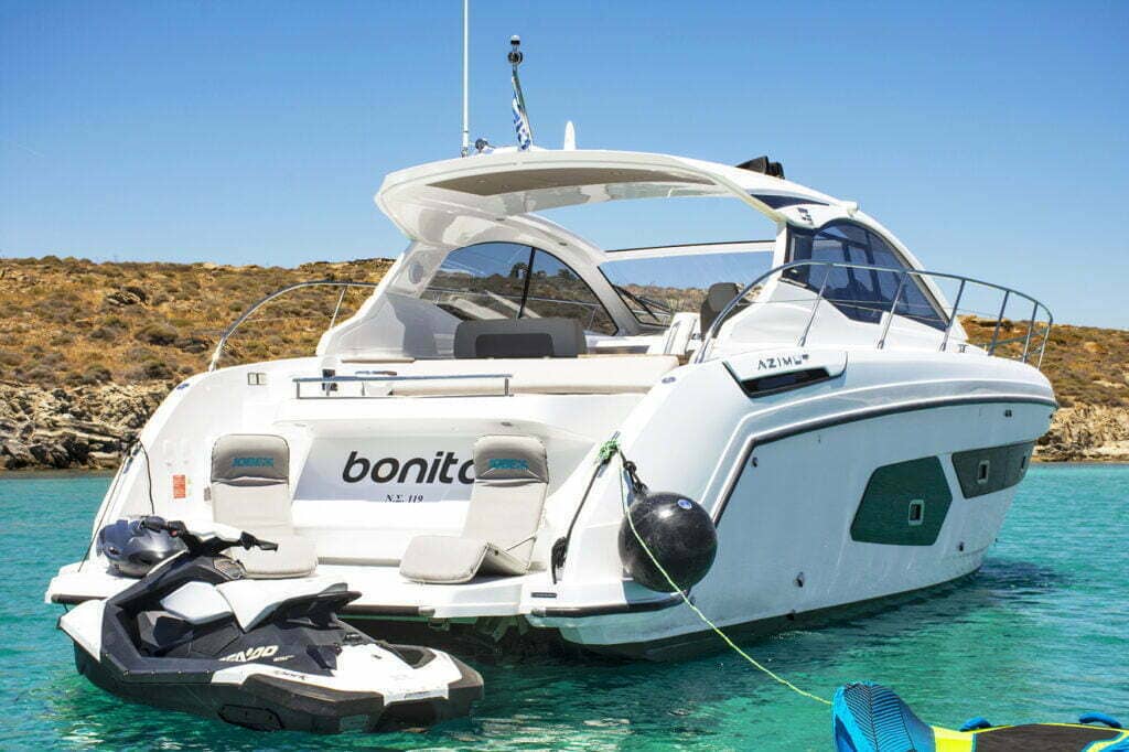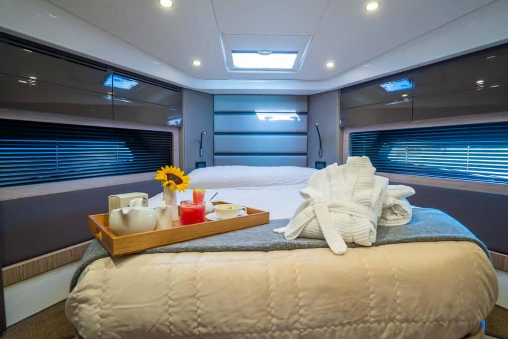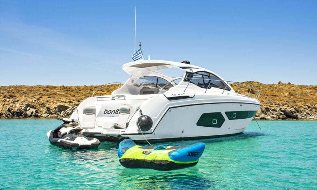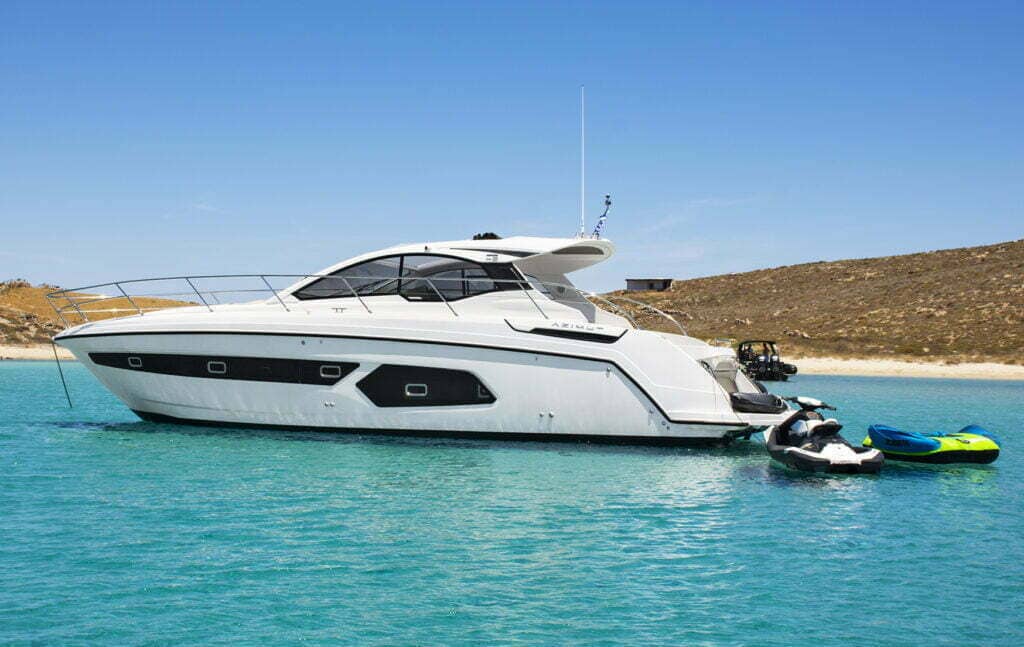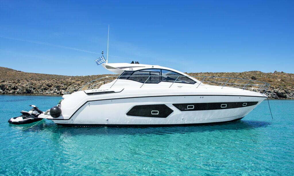 Azimut Atlantis delivers an exceptional seakeeping performance with it’s sleek well honed lines and it’s spacious interior and exterior areas. You will enjoy generous seating and dining areas including flexible forward seating that converts into a sunbed. It’s power to thrill continues on the inside with a luxurious voluminous interior where an unparalleled experience and sense of space awaits you. Beautifully styled throughout, this yacht blends inviting comfort with cutting edge technology. The spacious main deck features a well-equipped gallery with a generous seating area and dining space. Below deck there are two luxurious en-suite cabins including a forward VIP suite, a full beam master suite with 3 beds. The mega yacht is a total length of 43 feet. It is a leader in its class and continues to set the highest of standards. Rent now Azimut yacht.