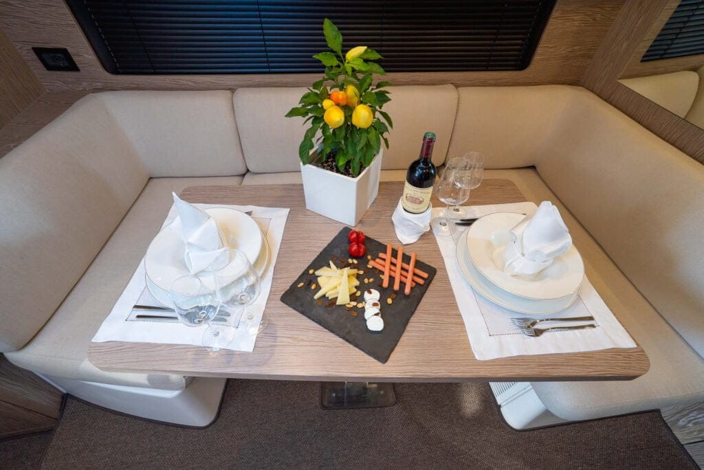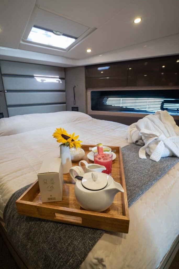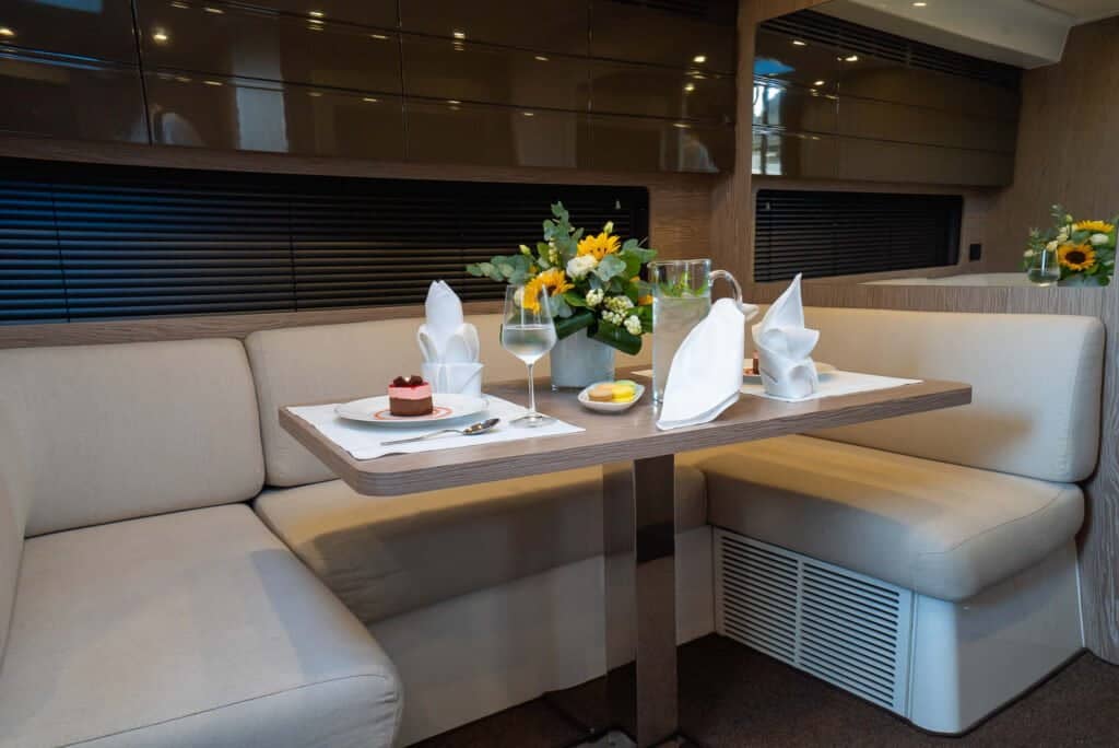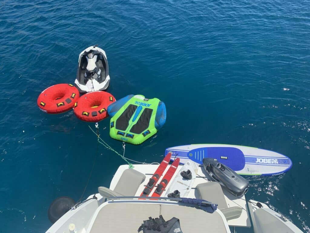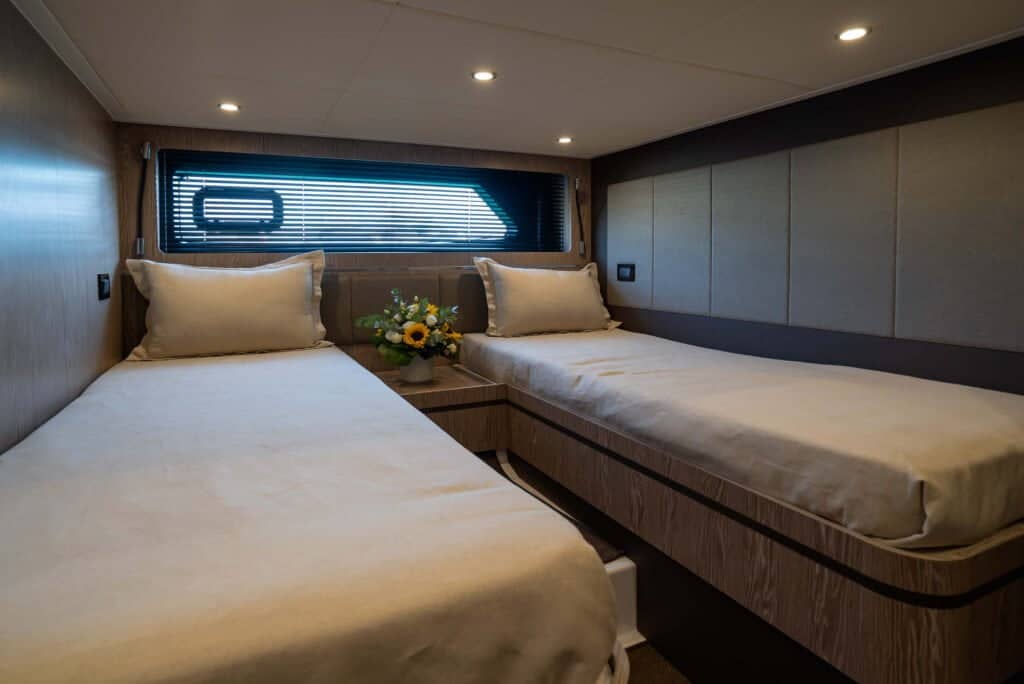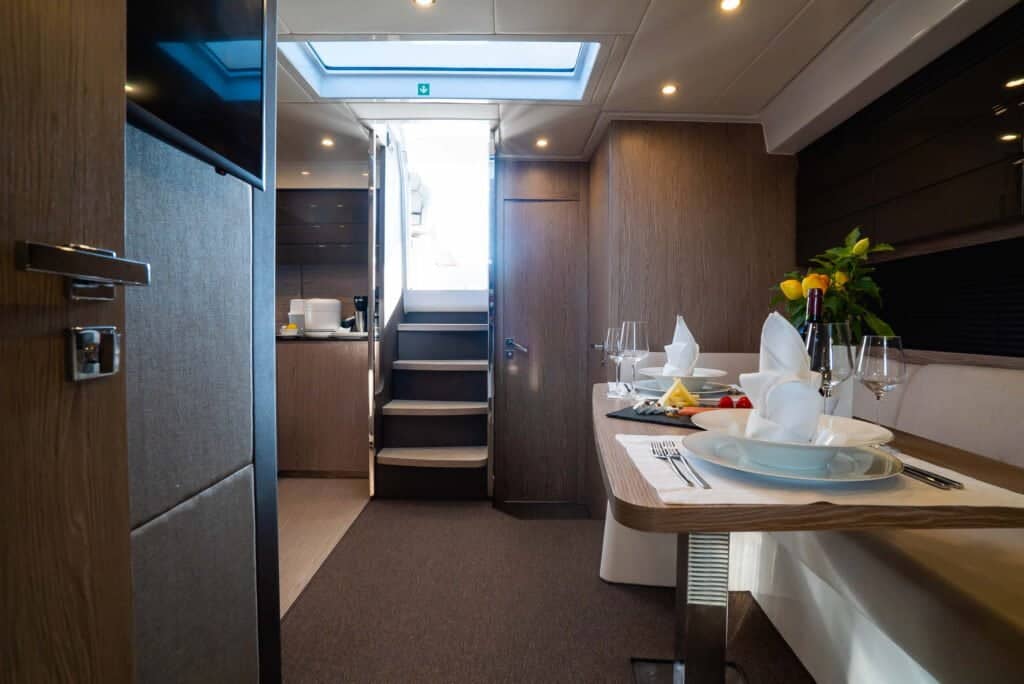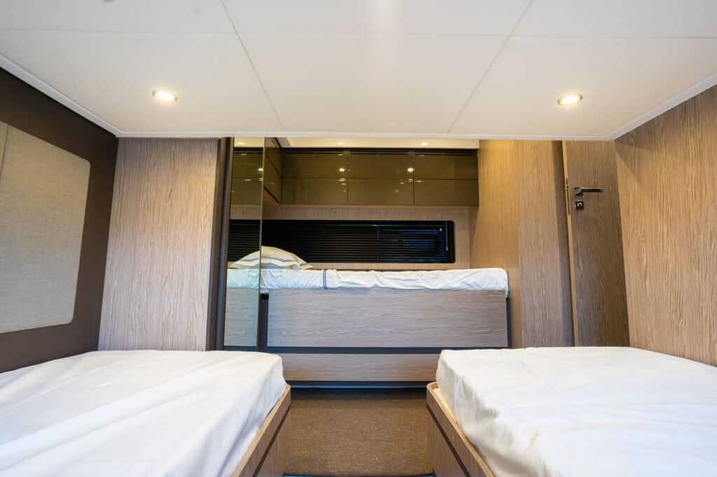 Azimut Atlantis delivers an exceptional seakeeping performance with it’s sleek well honed lines and it’s spacious interior and exterior areas. You will enjoy generous seating and dining areas including flexible forward seating that converts into a sunbed. It’s power to thrill continues on the inside with a luxurious voluminous interior where an unparalleled experience and sense of space awaits you. Beautifully styled throughout, this yacht blends inviting comfort with cutting edge technology. The spacious main deck features a well-equipped gallery with a generous seating area and dining space. Below deck there are two luxurious en-suite cabins including a forward VIP suite, a full beam master suite with 3 beds. The mega yacht is a total length of 43 feet. It is a leader in its class and continues to set the highest of standards. Rent now Azimut yacht.