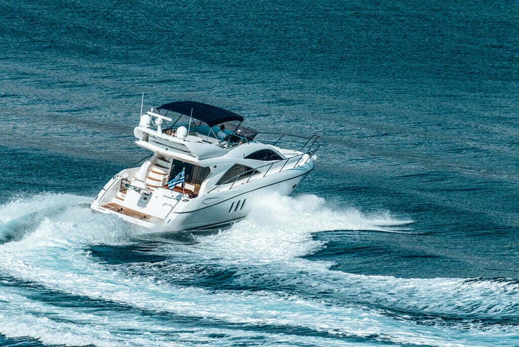 Funseeker delivers an exceptional seakeeping performance with it’s sleek well honed lines and it’s spacious Flybridge. You will enjoy generous seating and dining areas including flexible forward seating that converts into a sunbed. It’s power to thrill continues on the inside with a luxurious voluminous interior where an unparalleled experience and sense of space awaits you. Beautifully styled throughout, this yacht blends inviting comfort with cutting edge technology. The spacious main deck features a well-equipped gallery with a generous seating area and dining space. Below deck there are three luxurious en-suite cabins including a forward VIP suite, a full beam master suite and a twin cabin. The top yacht is a total length of 54 feet. It is a leader in it’s class and continues to set the highest of standards. Charter luxury yachts in Greece, Mykonos!