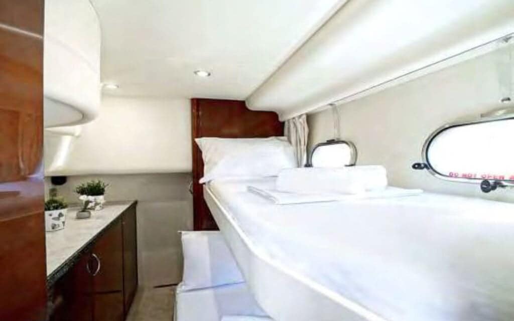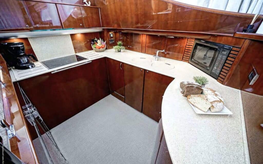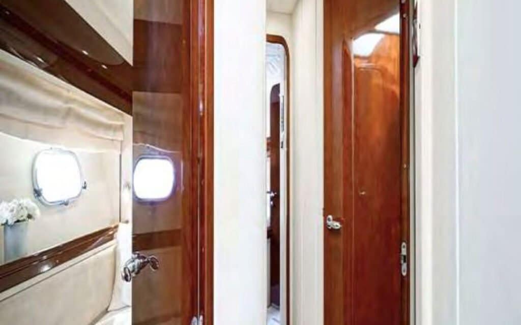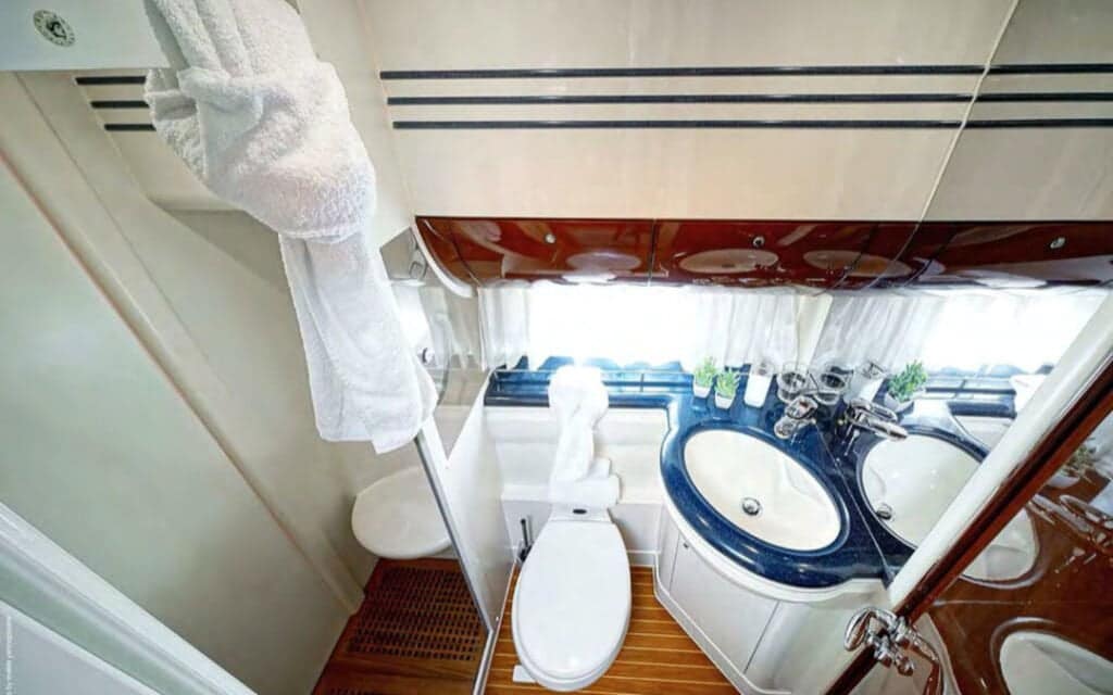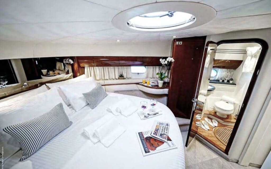 Step aboard the Princess 65′, and you’ll find a world where comfort meets style in perfect harmony. The yacht’s spacious deck provides an ideal setting for basking in the Mediterranean sun or enjoying the refreshing sea breeze. Inside, the tastefully designed interiors create an ambiance that complements Mykonos’s chic allure, ensuring your charter experience is nothing short of extraordinary.