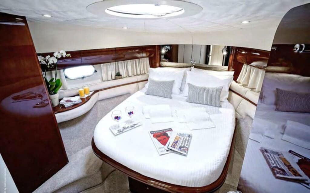 The Princess 65′ offers an elevated perspective, allowing you to witness Mykonos in all its splendor. As you navigate the island’s coastline, iconic landmarks, hidden beaches, and the vibrant hues of the Aegean Sea become your personal canvas. This private boat charter in Mykonos ensures uninterrupted views of the island’s beauty from every angle.