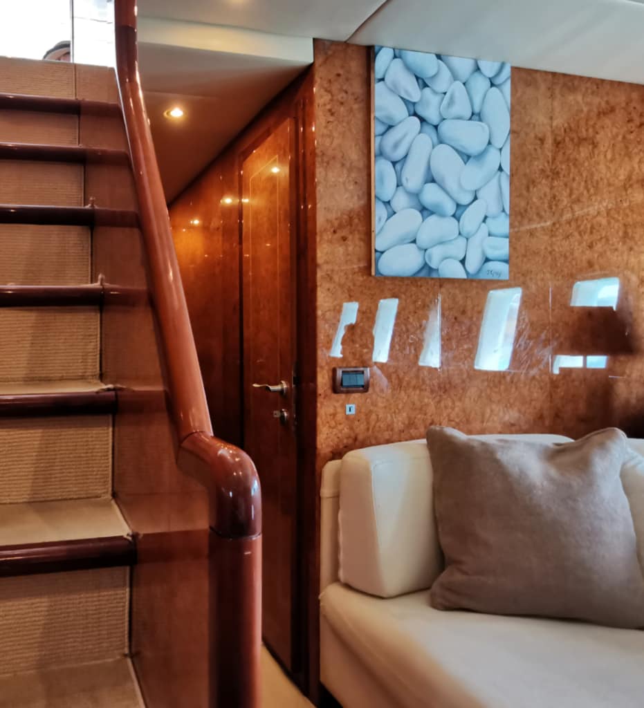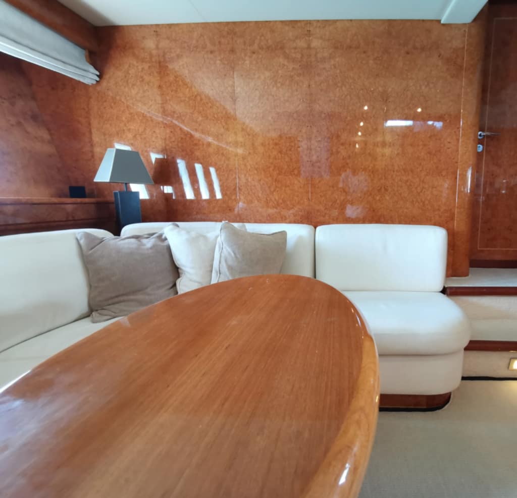 The 72′ Mangusta yacht offers luxurious accommodations for up to 8 guests. The spacious master suite features a king-sized bed, en-suite bathroom, and stunning views of the ocean. The three additional guest cabins also offer comfortable and stylish accommodations, each with their own en-suite bathroom.