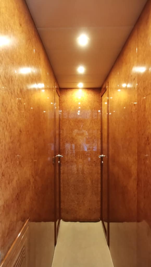 Her capacity for water toys and clever layout, make her the perfect yacht for a fun filled vacation on the water. She is a truly powerful joy ride, equipped with 2 Arneson drives that come from two 1300 HP MAN 12V engines.