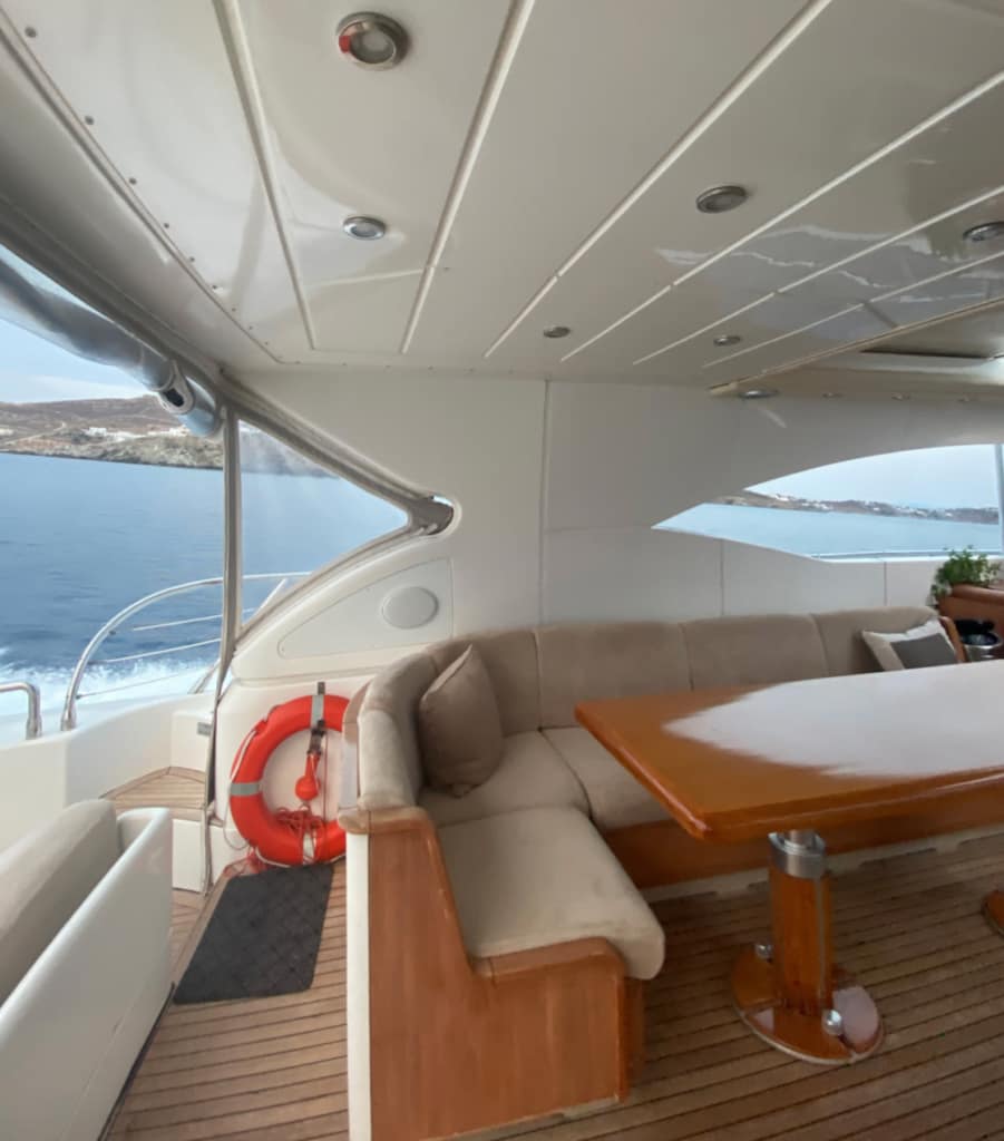 The 72′ Mangusta yacht is equipped with top-of-the-line amenities to ensure a luxurious and comfortable stay. Guests can relax in the spacious outdoor lounge area, complete with comfortable seating and a wet bar. The yacht also features a Jacuzzi, perfect for soaking in while enjoying the stunning views of Mykonos. For those looking to stay active, the yacht also has a variety of water toys, including snorkeling gear and a jet ski.