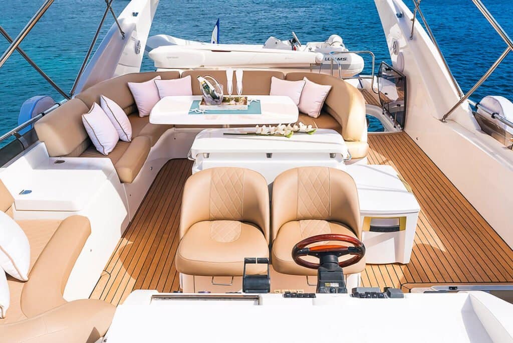 The 72′ Princess Boat is the crown jewel of Mykonos Yachting Company’s fleet. This stunning yacht can accommodate up to 12 guests, making it perfect for a group outing or a private excursion. The boat is equipped with all the amenities you could need for a day out on the water, including a spacious deck, comfortable seating, and a fully stocked bar. You can also take advantage of the boat’s sound system and play your favorite music as you cruise around the island.