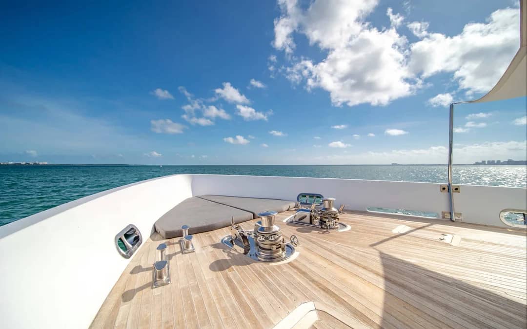 The Tecnomar 120′ Miami is a luxurious catamaran that offers the ultimate experience on the water. It features a sleek and modern design, with spacious decks and comfortable seating areas. The catamaran can accommodate up to 12 guests, making it perfect for a group outing or a private party. It also comes equipped with a variety of water toys, including jet skis and paddleboards, for added fun on the water.